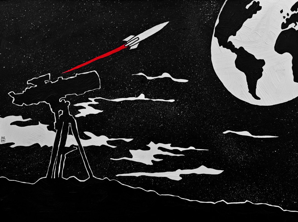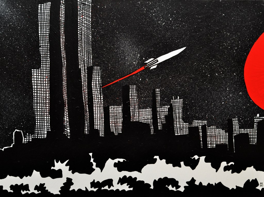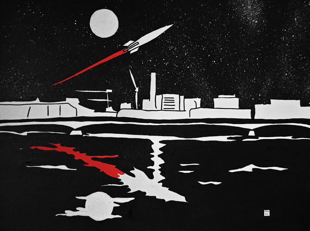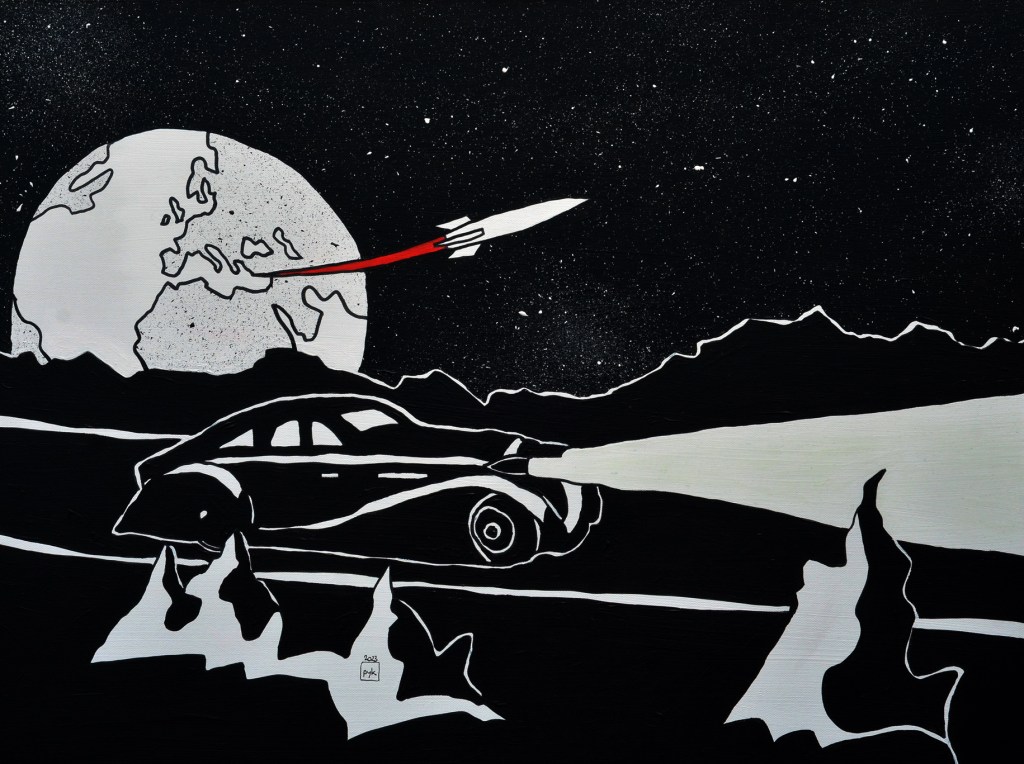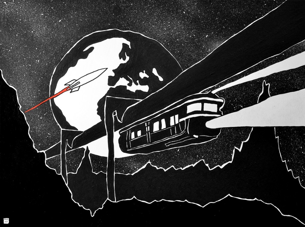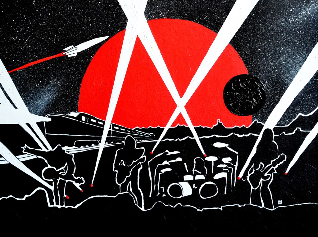 Find the epic breath of the space conquest of the « pulps » of the 50s. The paintings of pyk illustrate the nostalgia of a period that the author did not know.