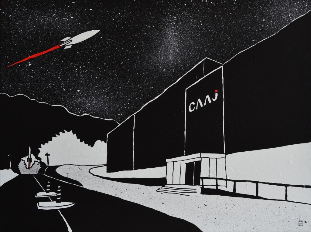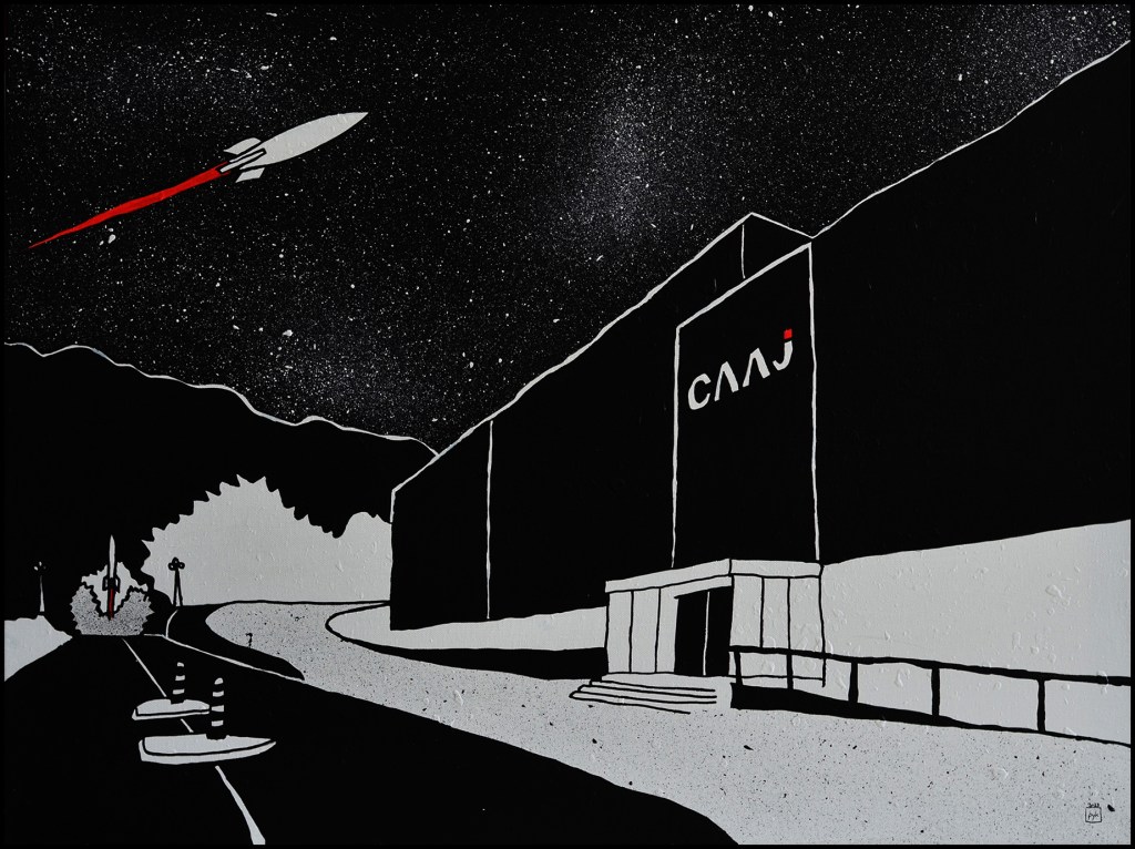 The CAAJ returns to the former CPT. The training center for technical professions is transformed into an astronaut training center, the step to take is not so large. And without a technical trade, there is no astronaut, no rocket and no space conquest. Painting created to celebrate the arrival of the CAAJ at the Forum de l’Arc.