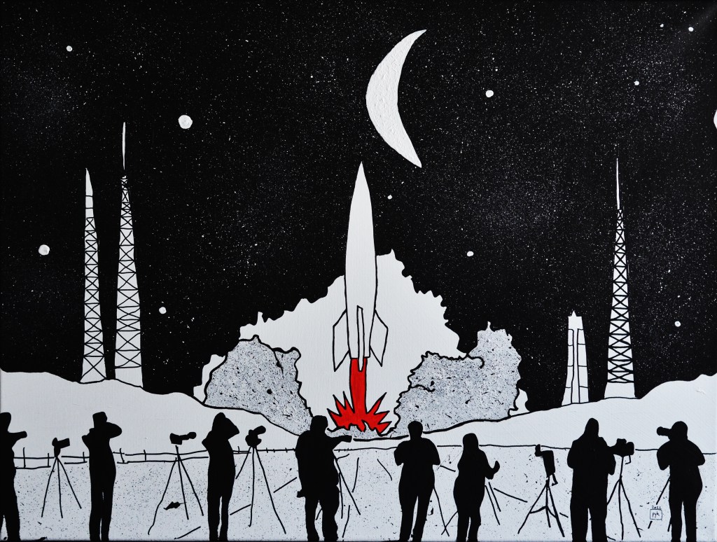 Very clearly inspired by the « rocket hunters » and in particular during the take-offs carried out in 2022. More precisely the launch pad of Cape Canaveral during the launch of the Artemis mission. All the journalists are « parked » on the same space and all hope to get THE good picture. Space conquest remains a totally exciting subject in 2022… even if in Switzerland the Artemis mission has been covered very little (except by Roland Keller and his blog presstripamerica).