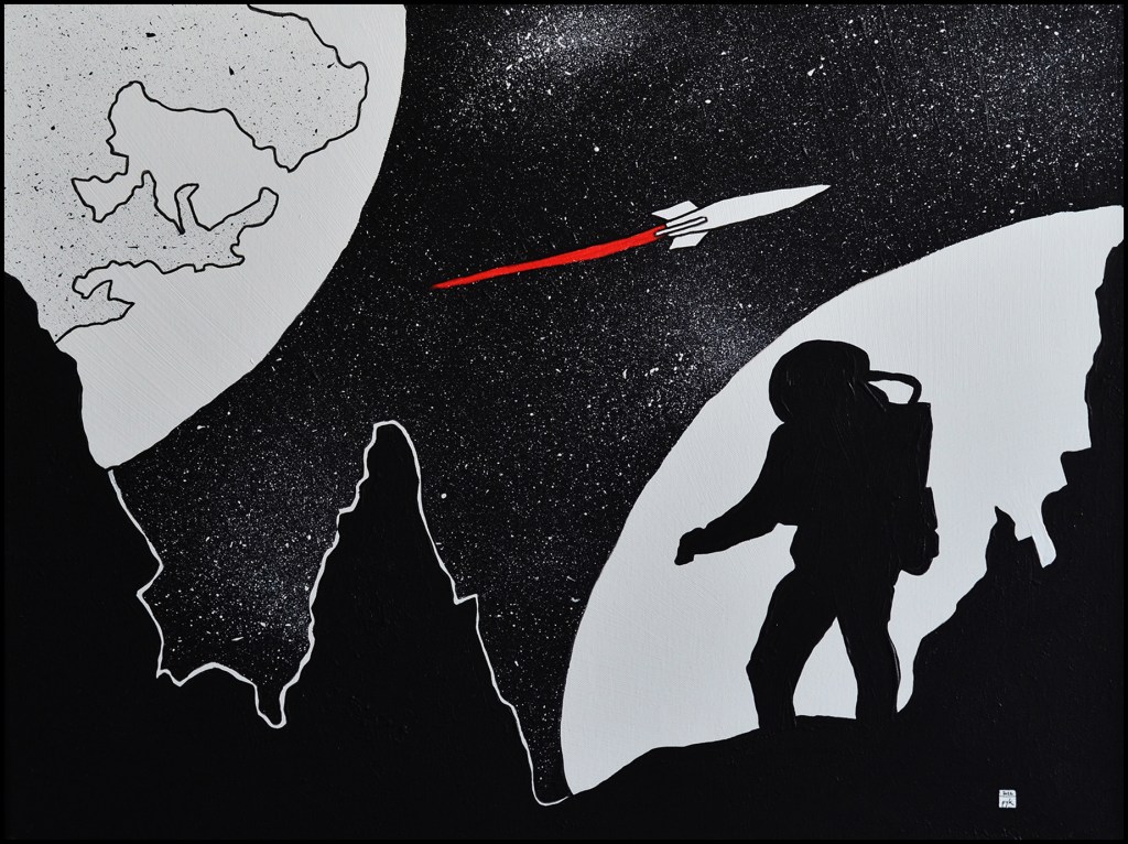 « L’astronaute touriste » se ballade sur la lune. De nombreux romans illustrent le boom des croisières spatiales.. et très souvent des problèmes qui peuvent y survenir. Une de mes premières rencontre avec ce type d’aventures est le double roman d’Arthur C. Clarke S.O.S. Lune et Naufragés de la Lune (1962).