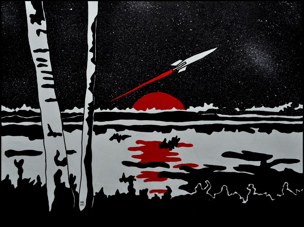 Peinture acrylique noire, blanche et rouge